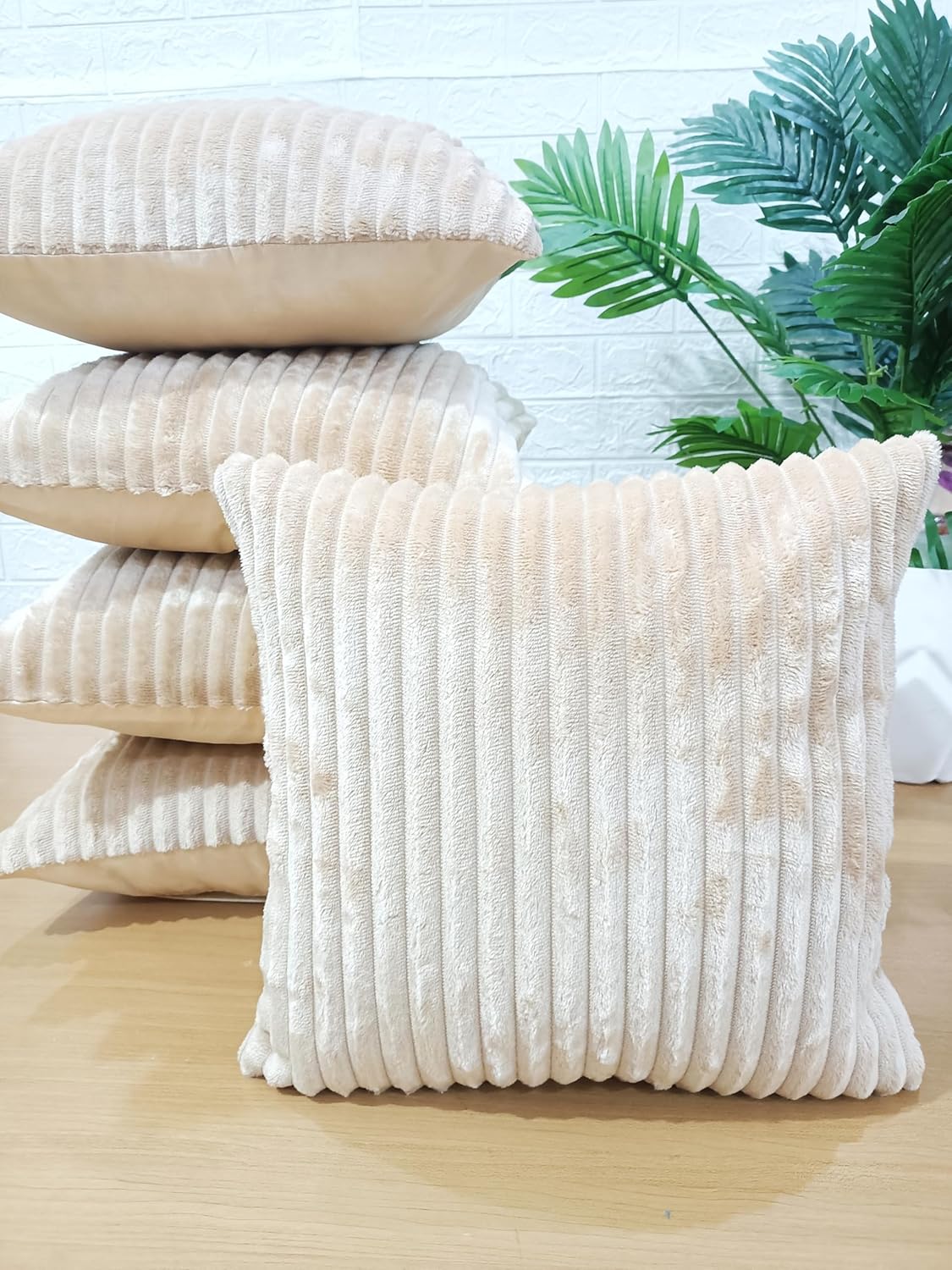 Transform your living space instantly with the LOFEY Pack of 5 Velvet Cushion Covers. Designed for homeowners and interior enthusiasts seeking timeless elegance, these 16×16-inch beige covers blend luxury and practicality. Crafted from soft velvet with subtle striped detailing, they refresh sofas, beds, or reading nooks effortlessly.